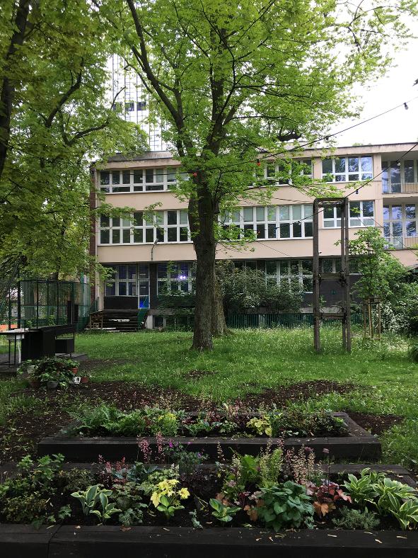 Szkoły powstały na terenie dawnego Ogrodu Pomologicznego – jednego z ważnych punktów przedwojennej Warszawy.