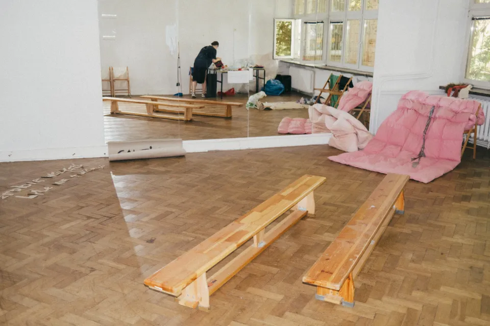 Rezydencja Tamary Olgi Briks nosiła roboczy tytuł Zdelegalizować balet. Tancerka pisze w zgłoszeniu: „Chcę odzyskać taniec dla siebie, dla nas” i wymienia przemocowe praktyki choreograficzne w balecie. Na pierwszym spotkaniu opowiadała o doświadczeniach nadużyć i przekroczeń granic w pracy. Deklarowała, że projekt narodził się z przekonania, że jeśli ma nie zrezygnować z tańca, musi się w nim na nowo odnaleźć. Mówiła o trudnościach wystawiania się na pokaz, oceniania ciał, co było dla niej w balecie doświadczeniem blokującym i ostatecznie skłoniło ją do odejścia. Briks z początku przedstawiła pomysły uwspólnienia przestrzeni rezydencyjnej i włączenia do niej głosów i doświadczeń innych tancerek – poprzez zainicjowanie spotkań grupy wsparcia, zebranie historii czy stworzenie poradnika radzenia sobie w przypadkach nadużyć. 6 Wstępna koncepcja uległa jednak znaczącym zmianom, a artystka ostatecznie pracowała sama, skupiając się na tworzeniu przestrzeni/instalacji, w której ślady wypalenia współistniały z praktykami regeneracyjnymi. Problematyzowała przy tym poczucie obowiązku działania na rzecz społeczności oraz własny brak sił.
